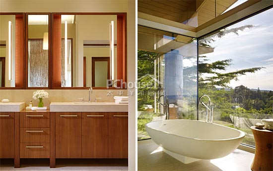 浴室采用玻璃的透明设计,使你可以一边沐浴一边欣赏窗外旧金山海滩以及派恩山的美景。