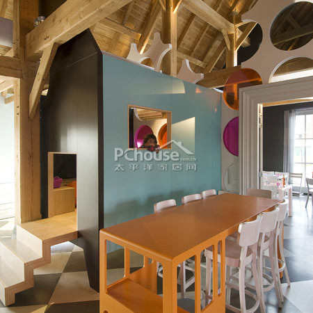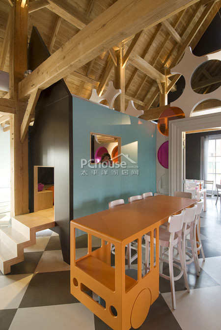 【太平洋家居网 设计频道】荷兰设计师Tjep,完成了一个餐厅设计。在这家充满意趣的餐厅里,大人和小孩的界限被混淆了,大人能变成儿童,儿童也能变成大人。
