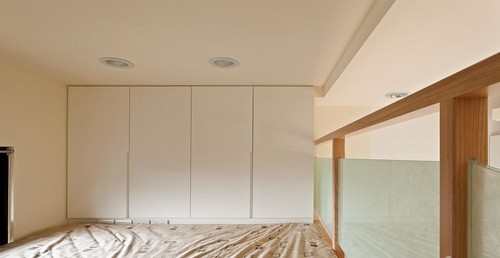 为了保有整体高度,设计师张巧慧捨弃了空调设备的吊隐设计,改以壁挂处理不仅可替屋主节省预算,更可以保留下三十八至四十公分的屋高。客厅旁原本空置的空间,考量到小平数机能性需求,高四十公分地坪改以和室设计,成为侧开、上开兼具的地面空间,体上,设计师张巧慧预留下架高高度,让下层柜体瞬间增深,大型行李厢、长大衣都可轻鬆收纳于内,也可成为好客屋主的客房。