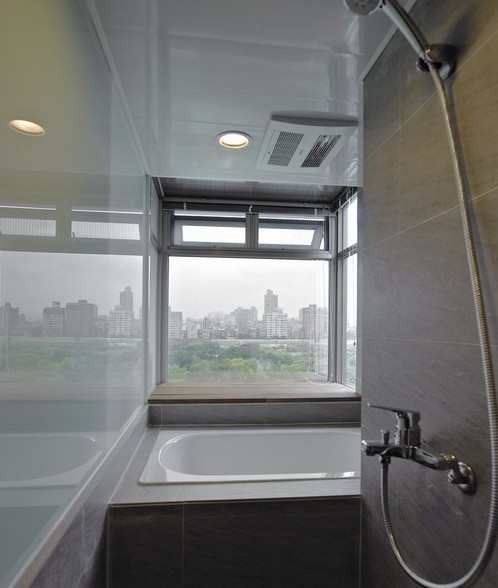 透过间接光源,场域中视觉大梁减量,镜墙后白膜玻璃加乘出的隐私效果,辅以架高设计变化出客房、小孩房甚至长辈前来的多功能休息空间,整体空间中设计师曾薰慧不舍光源的阻挡,将主卧卫浴移至窗边,采光明亮同时也满足屋主赏景、泡澡的期待。