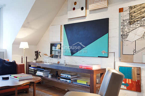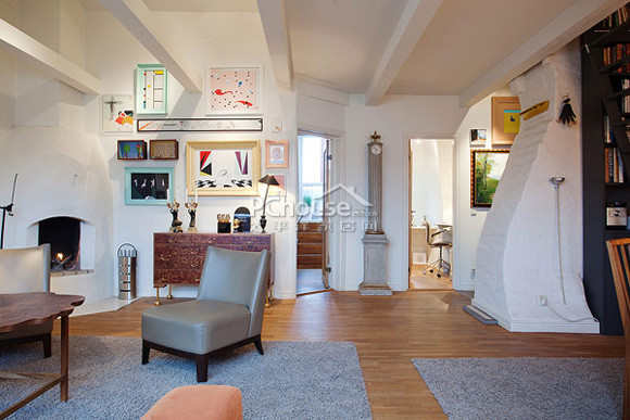 客厅是公寓的核心,传统风格的壁炉,倾斜的墙壁,装饰的艺术品和木质的家具,都让这个空间充满着舒适惬意的氛围。