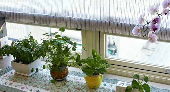 【太平洋家居网 设计频道】将近10年屋龄的老房子,扩充阳台空间后将窗台作为座柜及上掀式收纳,妆点绿意植栽引光入室丰富视觉效果。