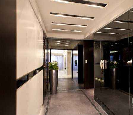 主要建材:冰晶白玉、木皮染色、进口磁砖、烤玻、灰镜、进口壁纸