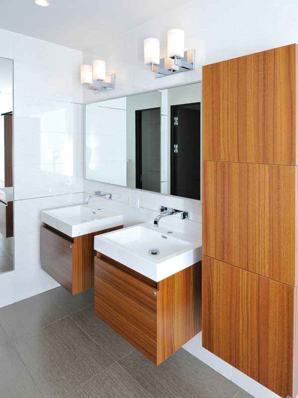 浴室的装修简洁,但非常人性化,适合喜欢淋浴和泡浴的居住者。