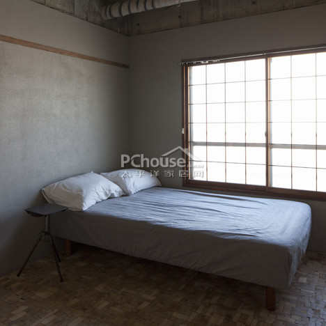 不同于滨松市的其他公寓,该公寓的卧室地板没有铺上什么,而是简单的打磨了一下使之呈现光滑的效果。