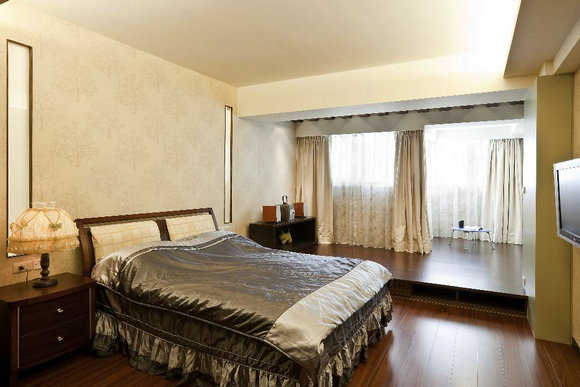 三间卧室都有相当宽广的活动空间,主卧以稳重的铺排,典雅的壁纸与柔和的灯光营造温馨氛围,并在窗边架高木地板成为小和室,方便男女主人与年幼的孩童相处。