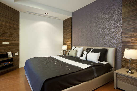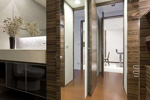 因是一个人居住的空间,单纯将私人空间划分为宽阔的卧室与书房,以同样的木纹与外连结,床头的花纹绷布营造低调质感,依照一人的使用需求,做妥切的机能规划,保留给人最舒适的活动空间。