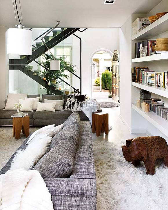 色调还是以白色为主,而黑色的涂鸦墙很显眼的放在尽头,起了强烈的对比作用,现代感十足。