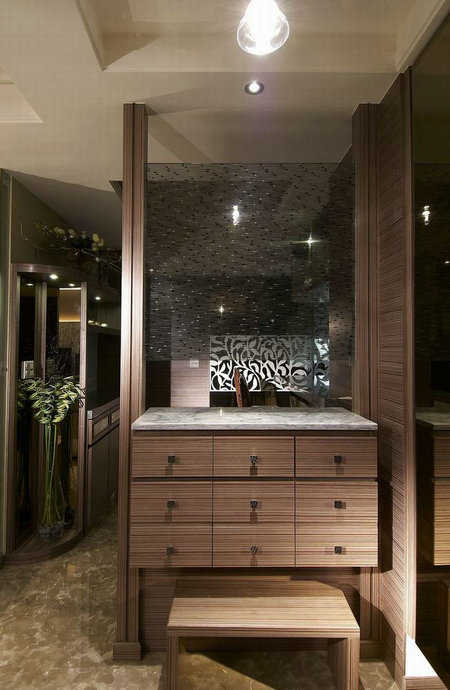屋主全权交由设计师处理,从线面、配件、家具、到软件家饰。于是将玻璃、石材、木作完整的统驭规划,材质上维持一定的品味,目的在于形塑出屋主的专属个人生活特质及空间独特的魅力。