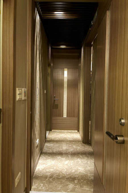 客房运用银檀木搭配茶镜做为主墙面的规划,透过灯光的间接安排,强调丰富的光影层次变化及视觉延伸效果。