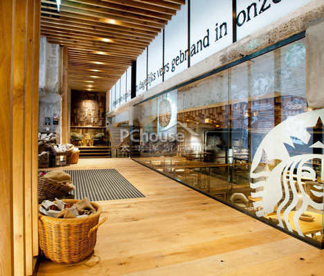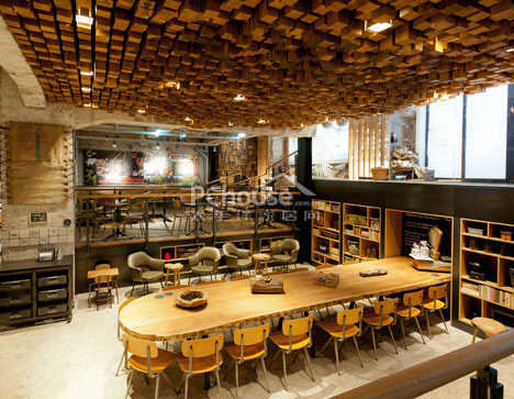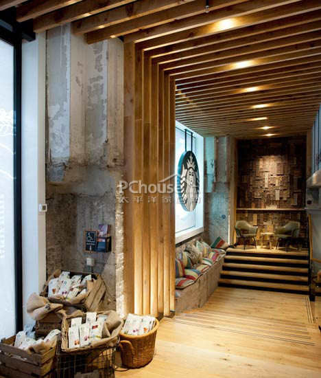 设计师除了回收了地下室可以看出年月痕迹的十九世纪二十年代的大理石地板之外,全店用了荷兰橡树木材所做的凳子,桌子和起伏的天花板浮雕。