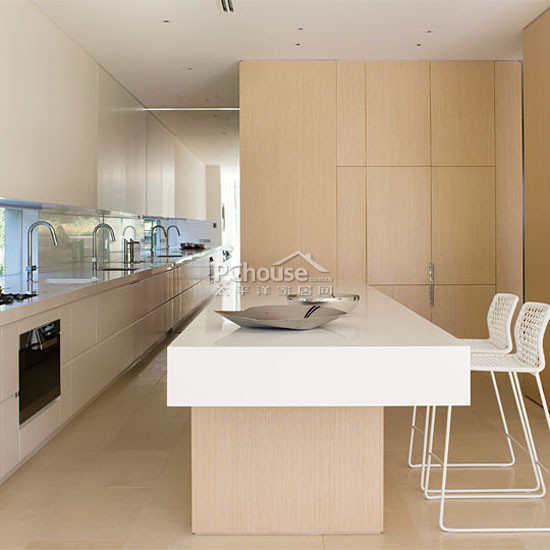 狭长的厨房和宽大的工作台分工明确、具有多重的功能性,为主人烹调提供了便利。