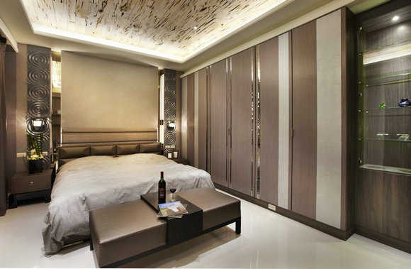 主要建材:夏木树石、咖啡绒大理石、青玉石、茶镜、金箔、皮革、台湾桧木、壁布、集层木地板、夹纱玻璃、南方松