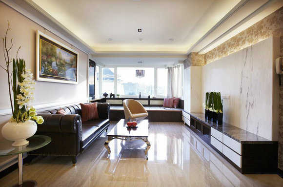 主要建材:进口壁布、茶镜、大理石、贝壳板、银箔