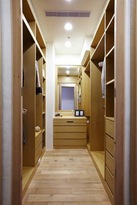 推拉窗与化妆镜两用的镜面拉门,让更衣室与化妆间有了美好结合。