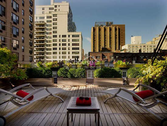 这个花园经过改造后变成现代式的城市空中楼阁,绿意甚浓的植物再配上红白搭配的时尚家具,确实是大变身。