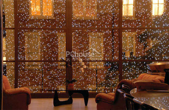 两层楼的砖砌灰泥墙身不复存在。取而代之的是用微小二极管特意订造的玻璃。白天的时候很平常,但是到了晚上就会有星座映像播放出来。