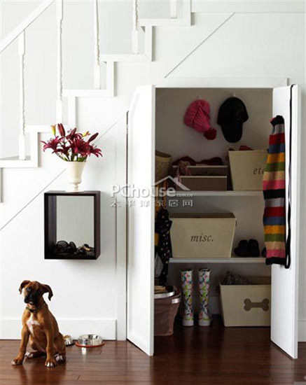 无论你是生活在一个传统还是一个现代的房子里面,不用花很大力气,你都可以有许多种的优雅方式帮助家居保持干净。而在楼梯周围的空间完全可以灵活转变成为内置的储物柜。