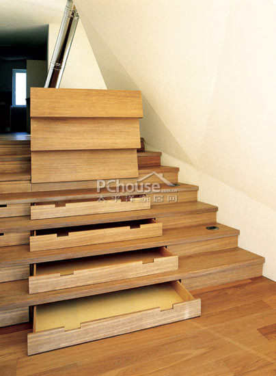 比较小的楼梯台阶可以被用来改成贴心的抽屉,但是同时又不被别人发现,更重要的是不怎么占空间。