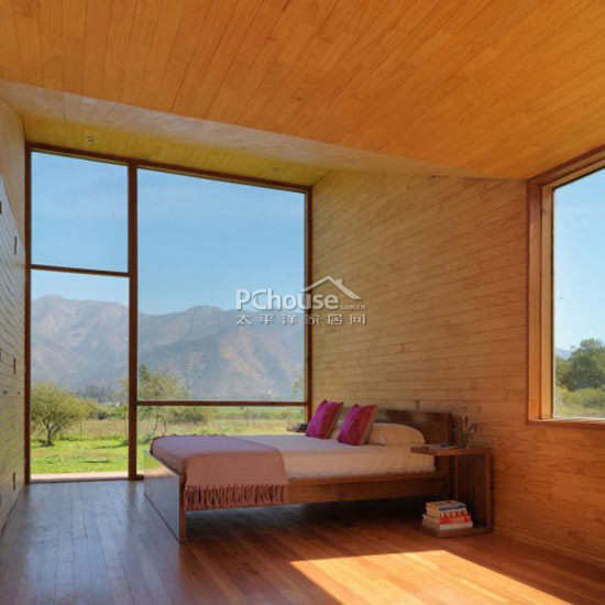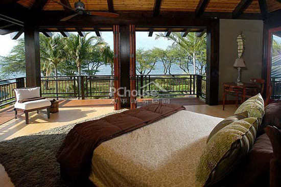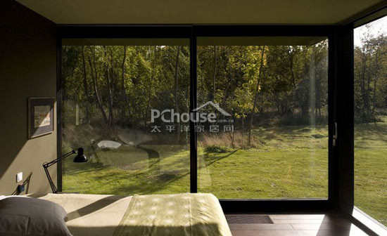 如果卧室是在一楼的话,可以选择滑动的玻璃门,除了有将美景收纳的功能,门还很好的建立了屋内外的联系。