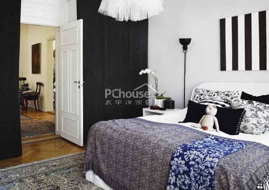 主题卧室设计同样是绝佳的选择,黑白搭配想成强烈的视觉对比效果。