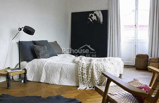 黑白色为主色系的卧室里面,放上两件色彩缤纷的抱枕可以让人为之一亮的感觉,活力十足。