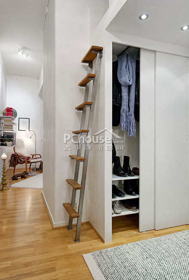 再转一个弯,便来到这个次卧室,卧室的安排很紧凑,但是也显得整齐有序,突出的不规则圆形搁板更是增添了几分可爱。