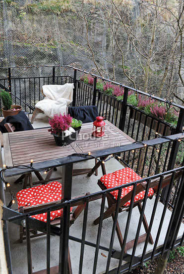 最后我们看一下小阳台:具有怀旧感的简单桌椅配套,几棵悬空在外的植物,虽然不比大阳台的宽敞,倒也别致。