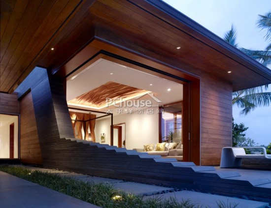 【太平洋家居网 设计频道科纳度假别墅坐落于夏威夷最大的科纳岛之上,是一栋名副其实的豪宅。Mlk建筑事务所利用再生资源和可回收材料构建了这栋惊人的度假屋。虽然设计异常惊人,但实际上却相当环保。