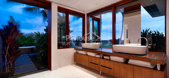 9英尺(约2.74米)高的落地窗户模糊了室内和室外的界限,室外的美景一览无遗,室内的一切都让人感到这是现代岛屿生活的延伸。一旦步入别墅里,你很快就会意识到:这才是真正的夏威夷。