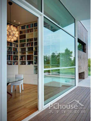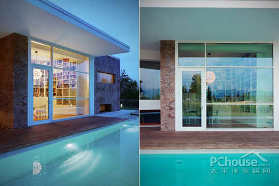 书房在夜色降临后与大白天里的对比,玻璃幕墙起到美观的作用,不管是白天还是黑夜,层次感格外明显。