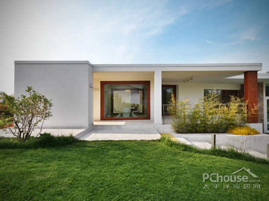 一眼看去,屋子的外部色彩对比鲜明。用白色作为墙体的主题色调,减少热量的吸收,降低室内温度。