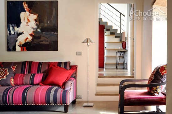 这款客厅以粉色和白色为主,清新亮丽的颜色,营造出空间的温馨感。条纹的沙发套,也打破了沉闷的气氛,令空间充满了家的感觉。墙面上的装饰画,更是有着西方开放热情的特质,即便是农舍也毫不例外。
