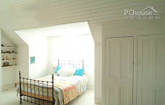编辑点评:纯白的卧室,营造着梦幻般纯净温馨的气氛。阳光透过窗户静静的倾洒如室内,整个空间沐浴在阳光下,温暖恬静。墙面上托架上的摆设物、装饰品,有为空间带来了家的温馨与个性。