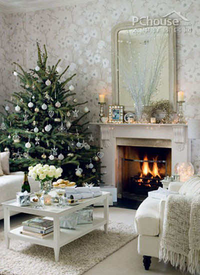 推荐理由:在圣诞里自是少不了圣诞树的,白色的球形,星星和雪花装饰着圣诞树,在这白色的空间里,这一绿也为空间添了一些生机与活力。