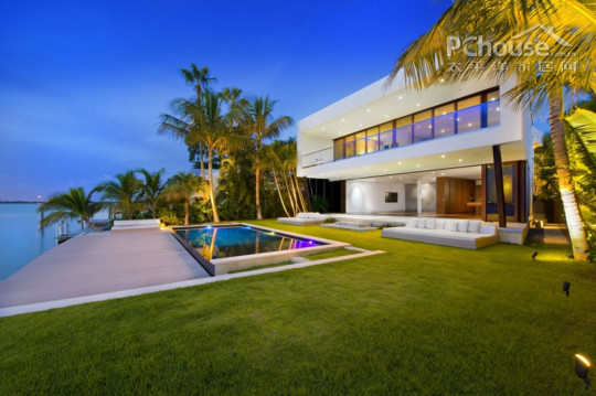 编辑点评:与别墅外观整体一致的方正规则,草坪的设置也同样在划分严谨的区域。草坪上的灯光更是别具匠心。纯自然的绿色与蓝色的大背景相互衬托,色彩分块明显。