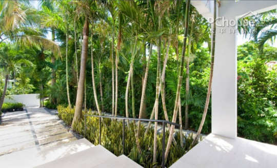 编辑点评:别墅外是享受日光浴的场所,长而舒适的白色沙发,一方小巧精致的水池,以及随地可躺的草坪,搭上风情的椰子树,真正达到了出门即野外的境界。