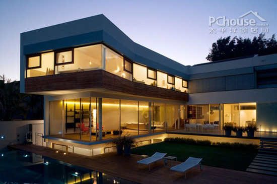 【太平洋家居网 设计频道】以色列Fine-Arc工作室完成了这个两层楼的当代别墅设计,用现代、简洁元素营造出空间十足的时尚感和简约大气的设计空间,宽敞,舒适而又优雅。大面积的玻璃材质使得整个空间更加地通透和明亮,柔和的室内照明平添一份温馨的家庭氛围。