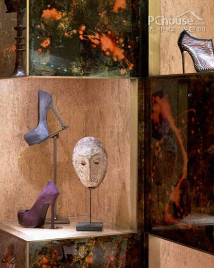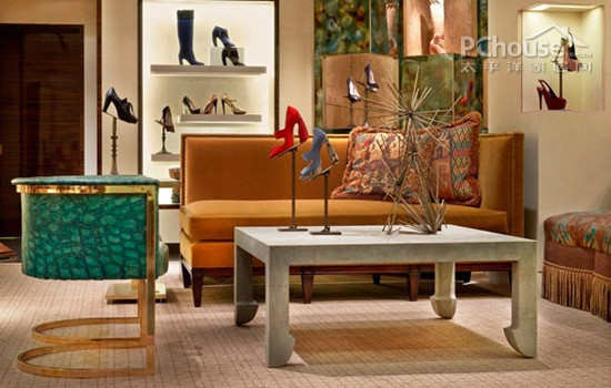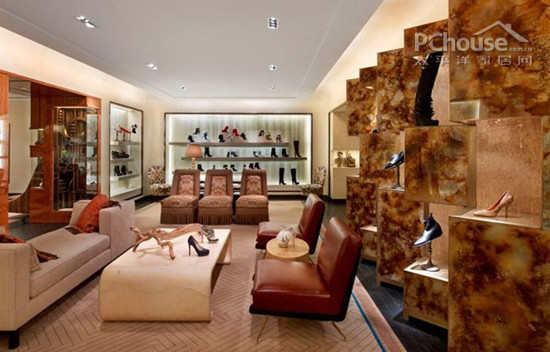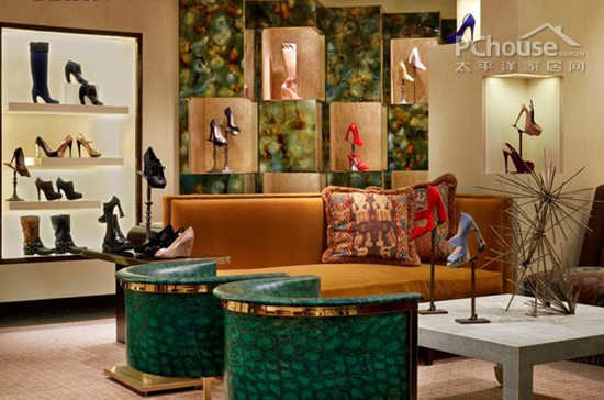 编辑点评:名师设计的鞋子本身就是一件艺术作品,放在货架上配合屋内其他元素,并使这一空间变成一个沙龙。