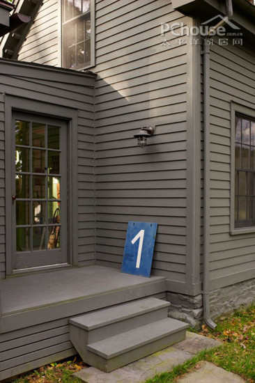 编辑点评:灰色的门框和灰色的外墙自成一体,连墙上的小灯也是一致的颜色。阳光照射下的灰色并不刺眼,反而看起来更为舒适。