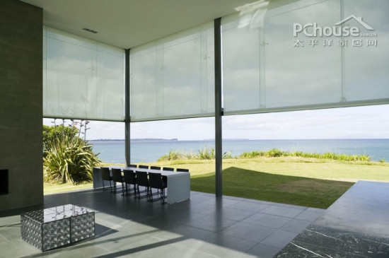 编辑点评:白天的视觉效果是绝佳的,玻璃窗上放下遮光幕布,将室内的刺眼光线调节成刚刚好的柔和角度。