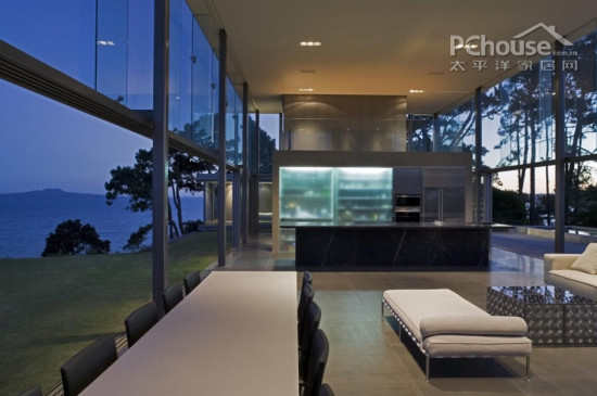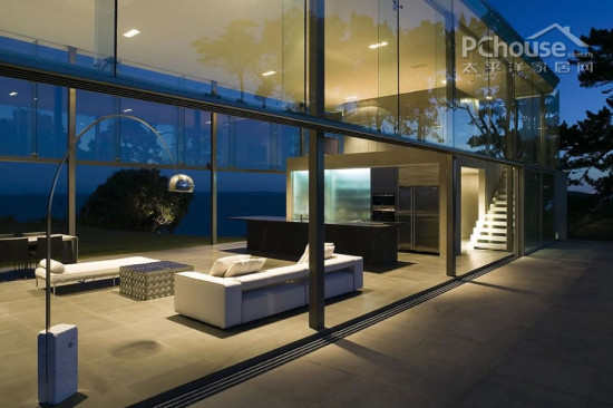 编辑点评:夜晚的视觉效果区别于白昼,因为有了湖水深幽的蓝色,房子里的颜色多了一份静谧的色泽。因自然的景观,给简单的室内添色,便是大自然的给予。