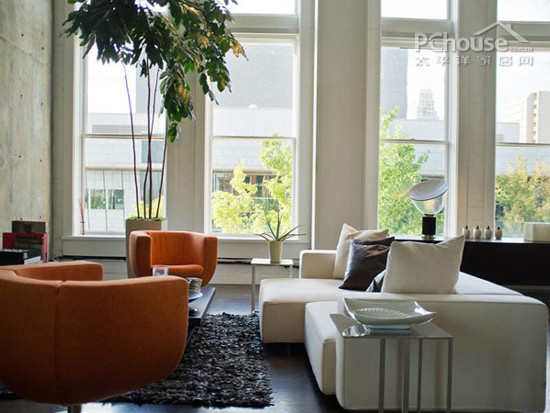 编辑点评:纯系列的皮质沙发设计优雅简洁,白色和橘黄色的搭配,略显跳跃,活跃空间氛围。