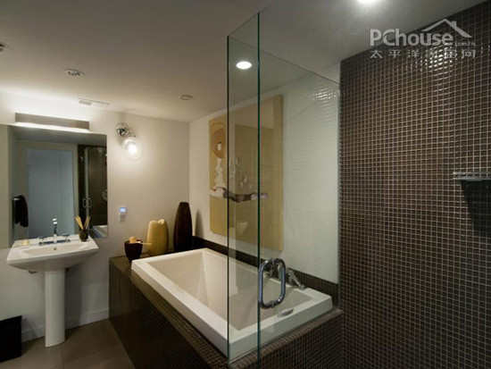 编辑点评: 黑色的马赛克显得更加的沉稳,在整个卫浴设计中,也显得很有范。