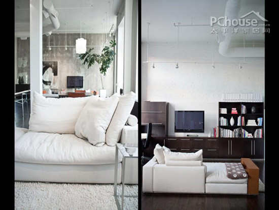 编辑点评:沙发设计很有创意,这种形式的沙发既照顾到了你坐着的姿势,同时也可以让你躺着也很舒服,在工作中累的时候过来躺躺也很惬意。