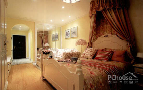 整个卧室最显眼的就是碎花布艺,再搭配上布艺台灯,整体效果让人感到仿佛置身于花海,非常贴近自然。