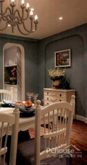 【太平洋家居网 设计频道】本案采用地中海式建筑风格,空间中到处可见拱门、半拱门及马蹄状的门窗,圆形拱门与回廊平行相连或垂直相连,在墙面处,只要不是承重墙,都运用半穿凿的方式来塑造室内的景中窗,展示出地中海式风格家居的一个情趣之处。