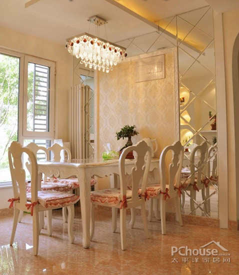 网友要求的装修风格为现代简约风格或者欧式田园,设计师将风格定位于欧式田园。简单的造型搭配壁纸与玻璃镜面,增加空间的温馨感与时尚感。
