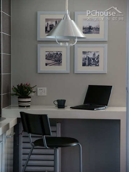 在整体风格的把握上,设计师除了调动黑白灰三色来勾勒空间之外,还加入了一些温馨的布艺和小饰品,使空间显得不那么“生冷”,更有家的感觉。