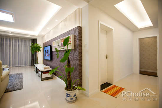 客厅与过道,吊顶的过渡让空间流畅起来。